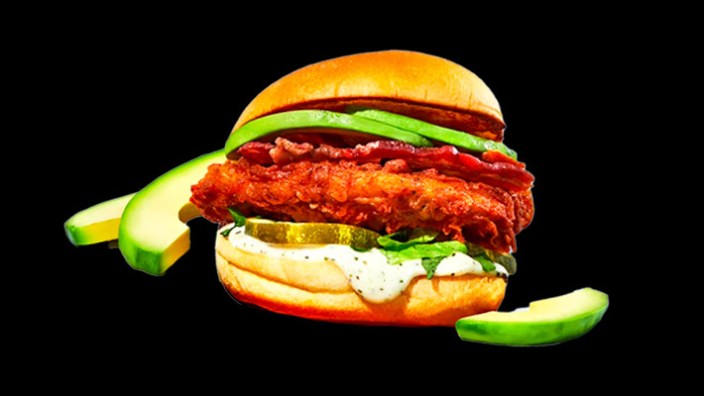 Un sandwich au poulet frit délicieux et satisfaisant avec une construction que nous aimerions voir reproduite dans d'autres chaînes. L'avocat et le bacon sont toujours gagnants