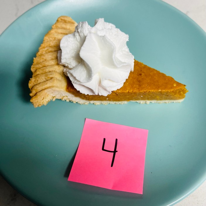 Alors, qu’est-ce qui l’a retenu ? Je dirais la croûte moelleuse et au goût neutre. C'est un petit reproche à avoir, mais nous comptons sur de petites nuances pour séparer le bon du bon, et même si je pense que c'est une délicieuse tarte à la citrouille, je ne pense pas que ce soit la meilleure que vous puissiez acheter cette année.